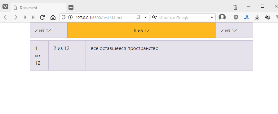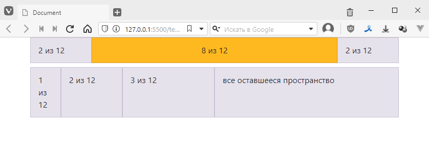 col-1 – занимает одну двенадцатую строкиcol-2 – занимает 2/12 строкиcol-3 – занимает 3/12 строкиcol-10 – занимает 10/12 строкиcol-11 – занимает 11/12 строкиcol-12 – занимает всю строкупопробуем подкрутить код: