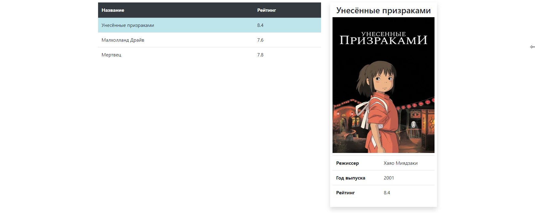 Допилить задание, чтобы как-то так выглядело, когда тыкаешь на строчки