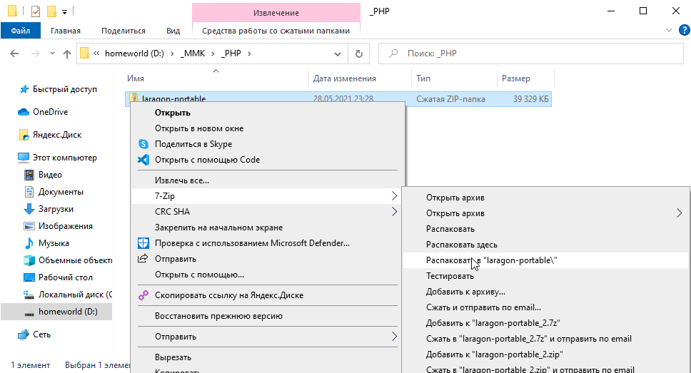 сохраняем внутрь папке laragon-portable в подпапках \bin\php: