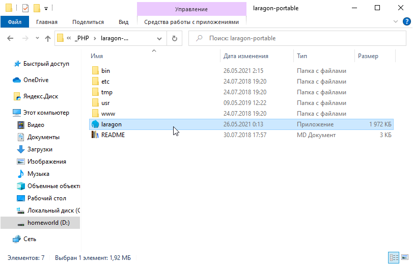 Запускаем файлик laragon.exe