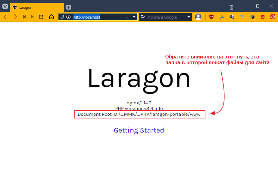 Теперь можно открыть сайт в браузере по ссылке http://localhost