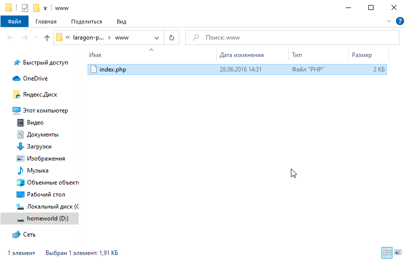 Так как не факт, что вы будете сидеть на своем компе, а устанавливать laragon по 10 раз не хочется. Давайте просто создадим отдельную папку под наш проект и будем с ней работать.