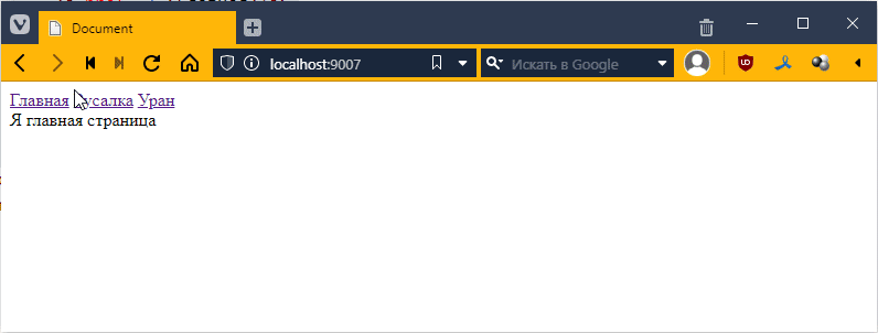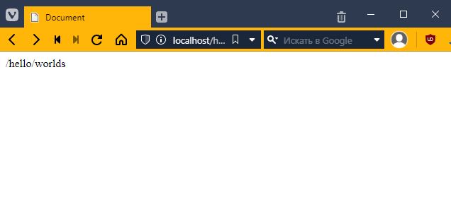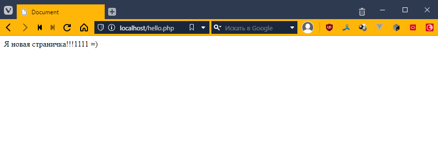 Давайте глянем на наш проект. У нас сейчас там один файлик. А так-то, обычно, на сайтах много разных ссылок. Давайте попробуем зайти на какую-нибудь ссылку, например, http://localhost/hello