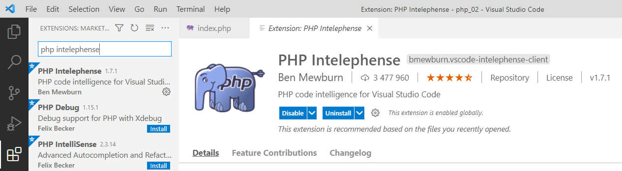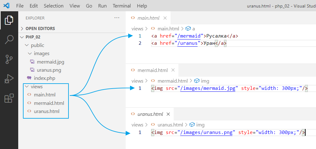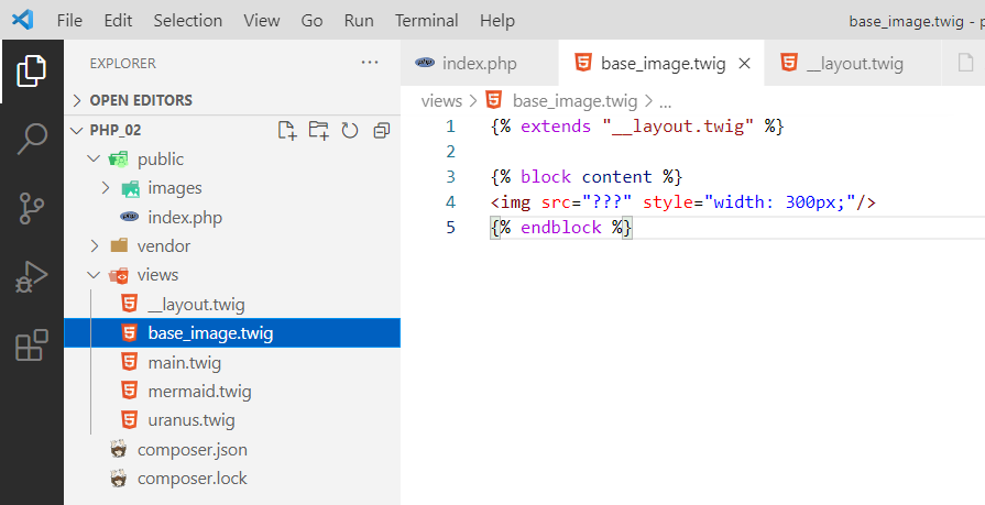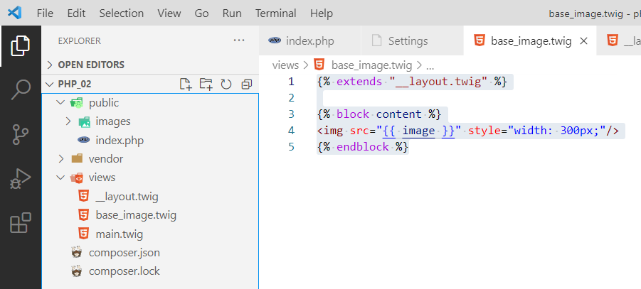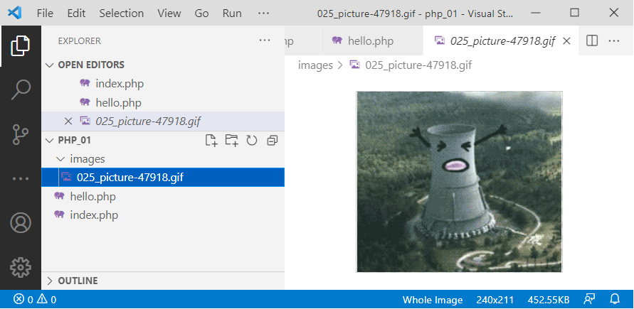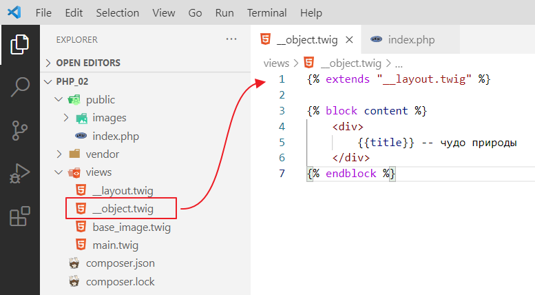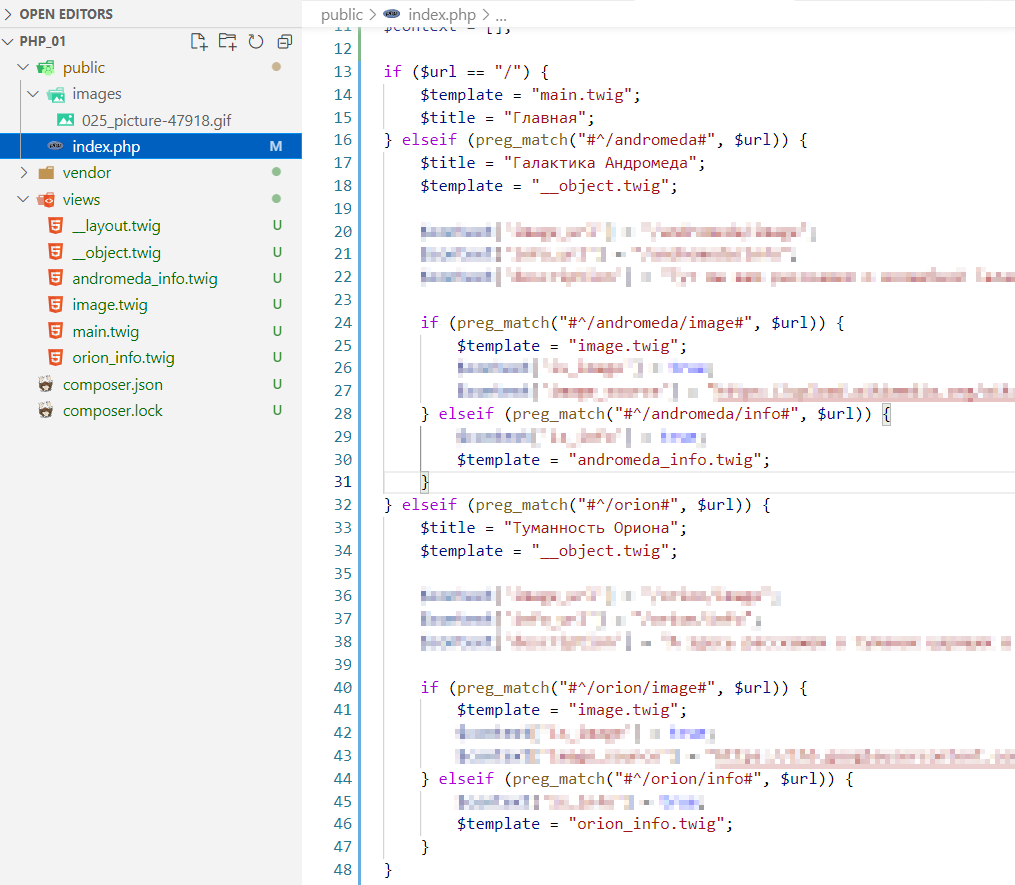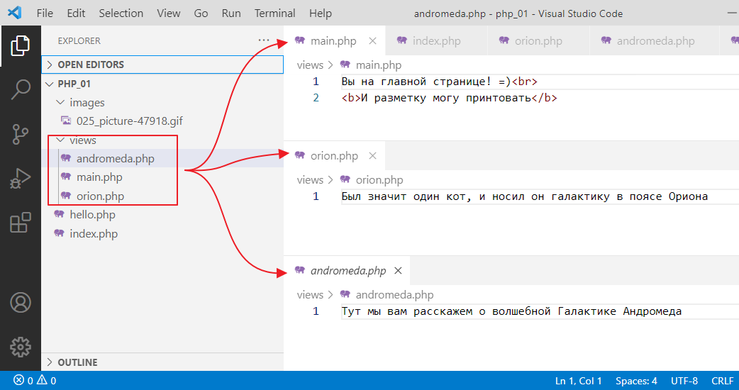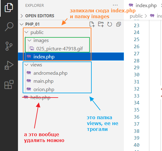 Давайте глянем, что внутри файла. Откроем index.php с помощью Visual Studio Code