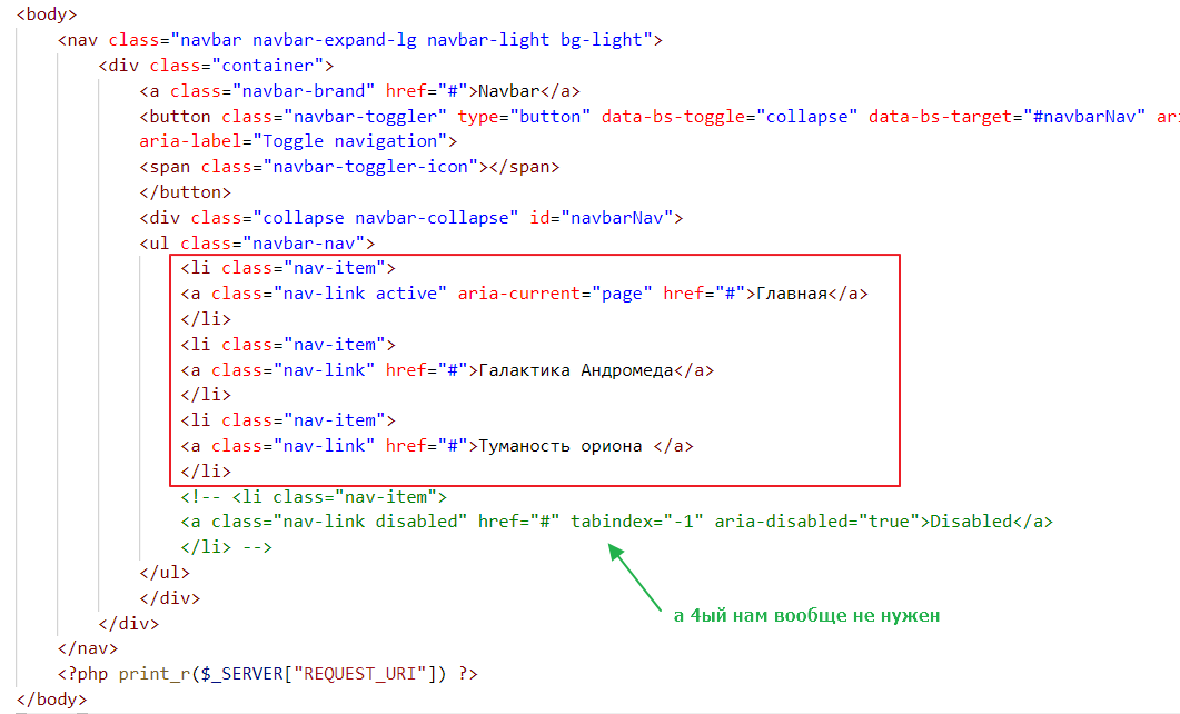 - [не обязательно] Использовать цикл для вывода пунктов в навигации