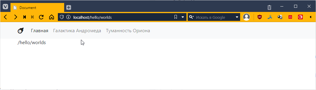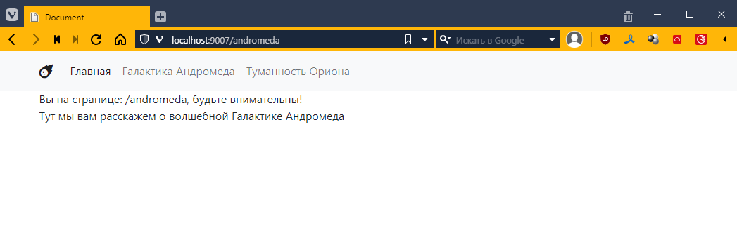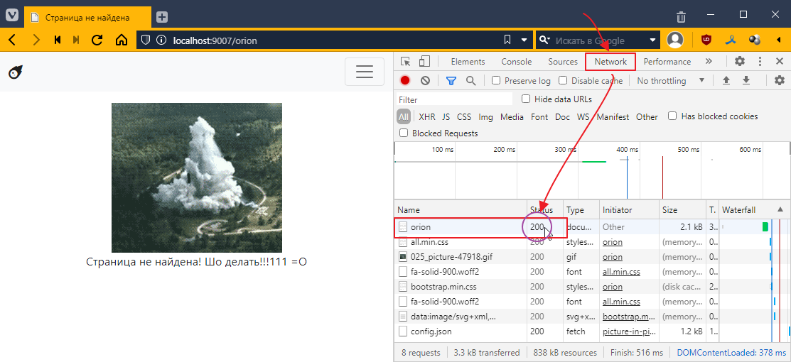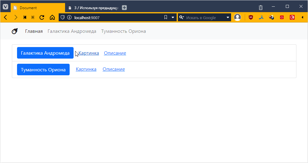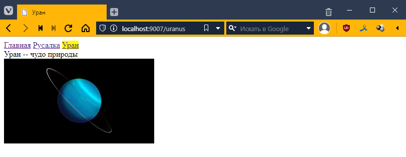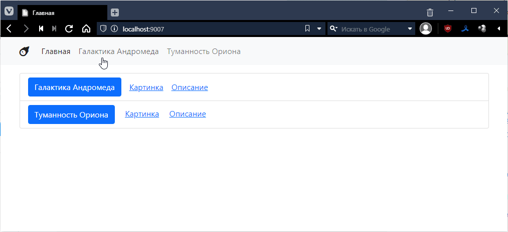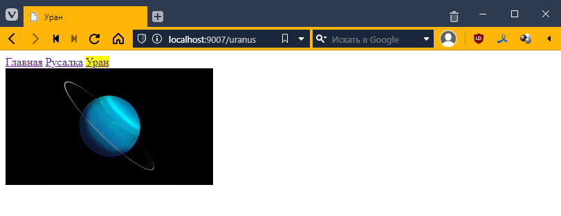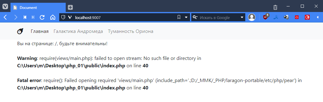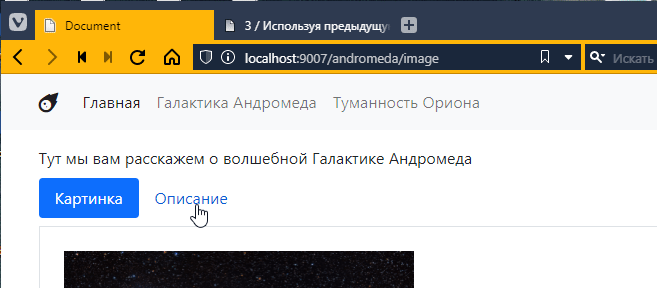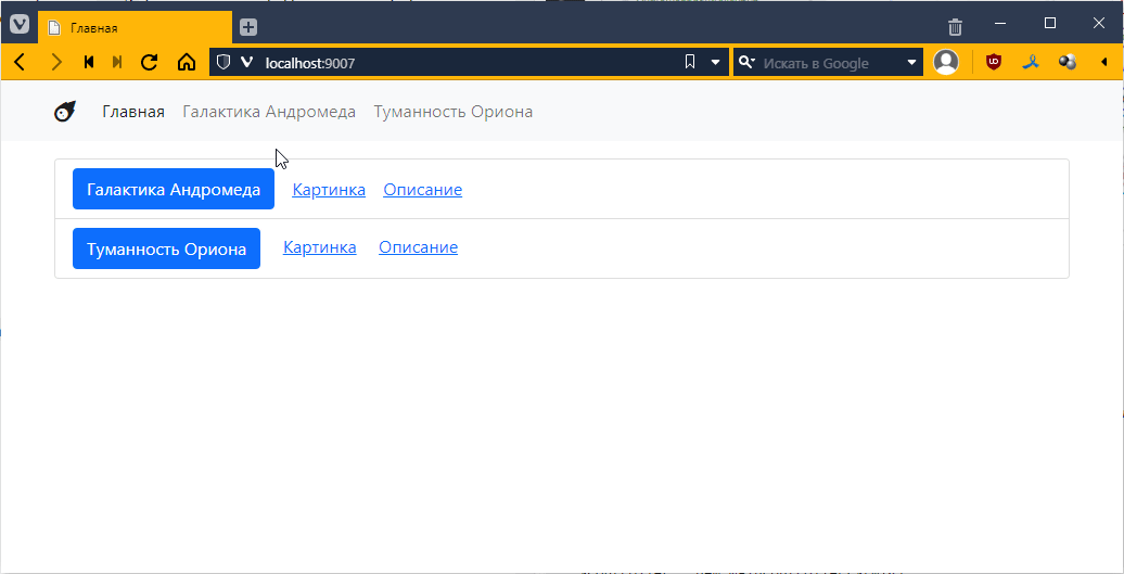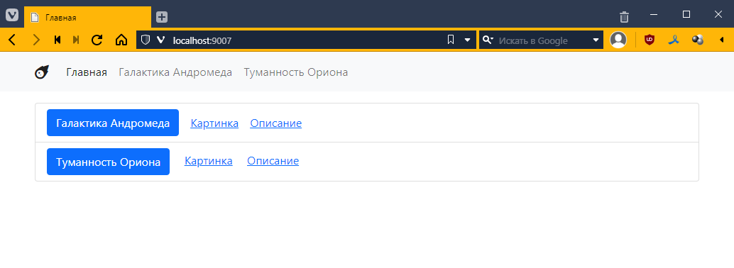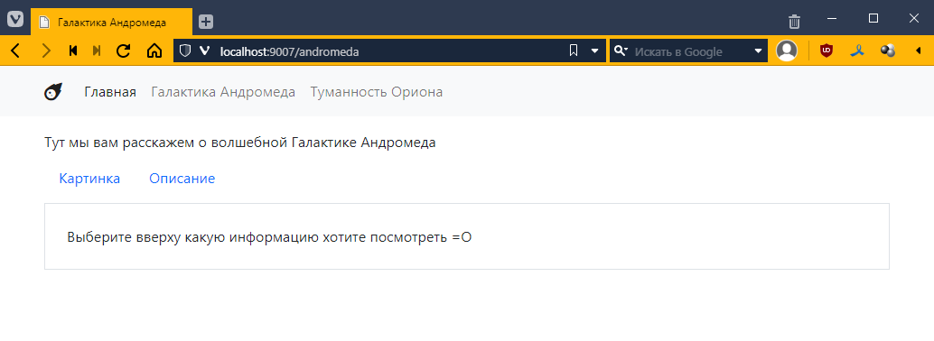так как для Ориона я еще контроллеры не делал, то по идее тыкнув на страницу Ориона, я как раз должен вызвать этот контроллер. Пробуем: