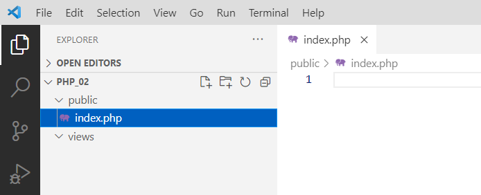 откроем ее через Visual Studio Code и созадим в ней файлик index.php и загоним в него