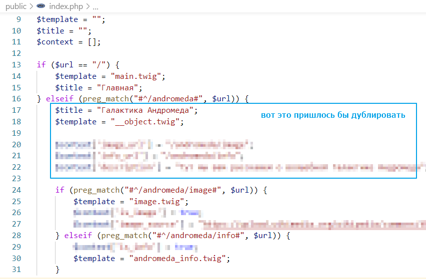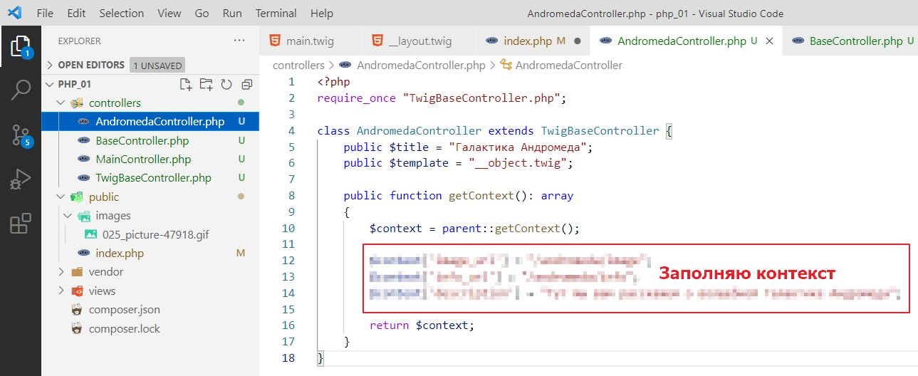 $controller = new AndromedaController($twig); // тут просто контроллер создаем