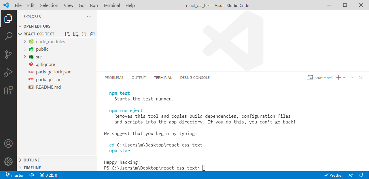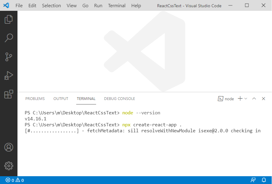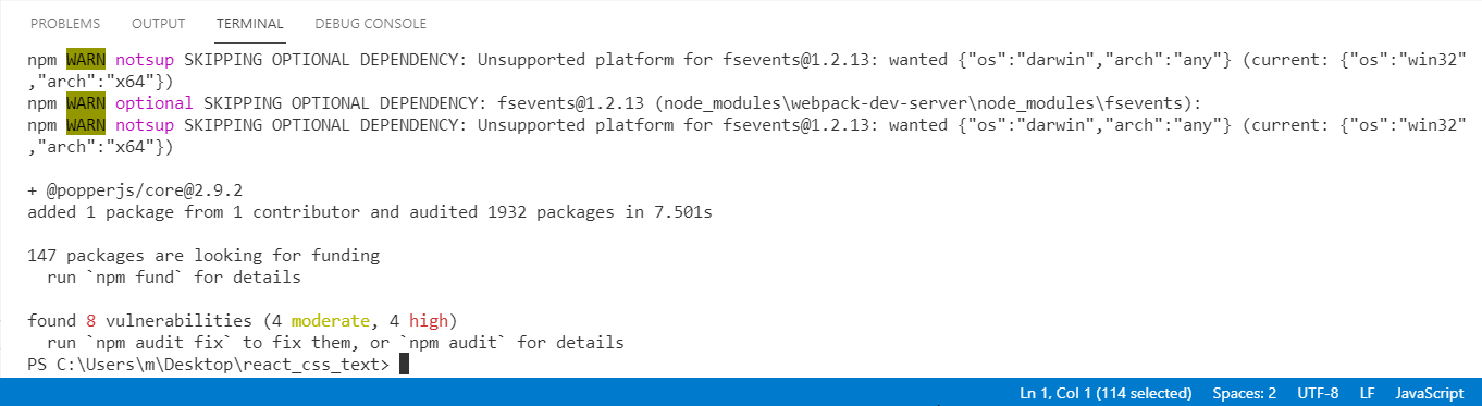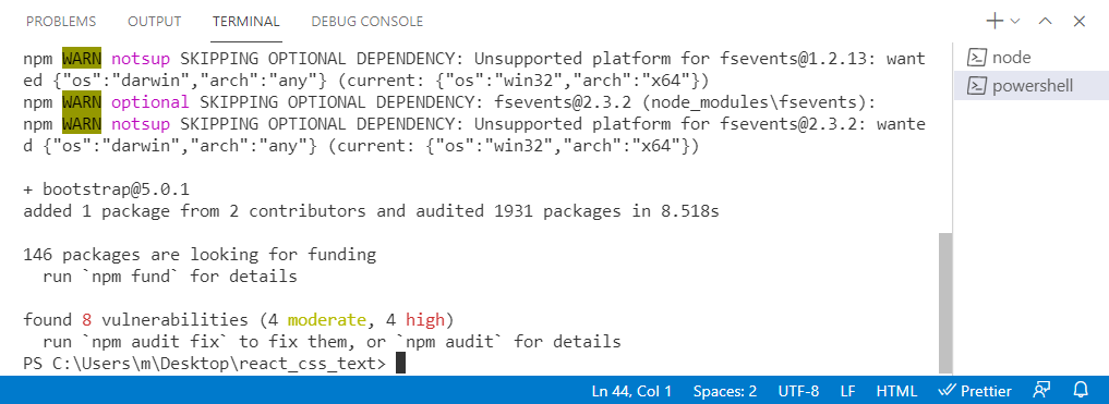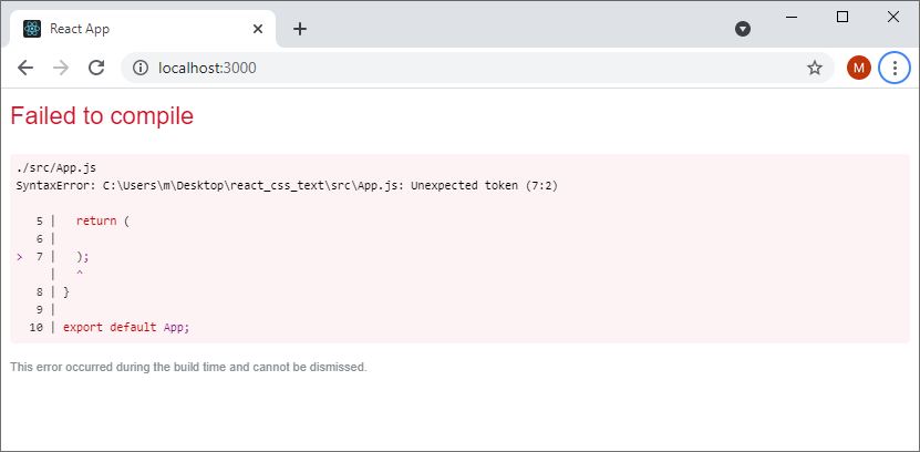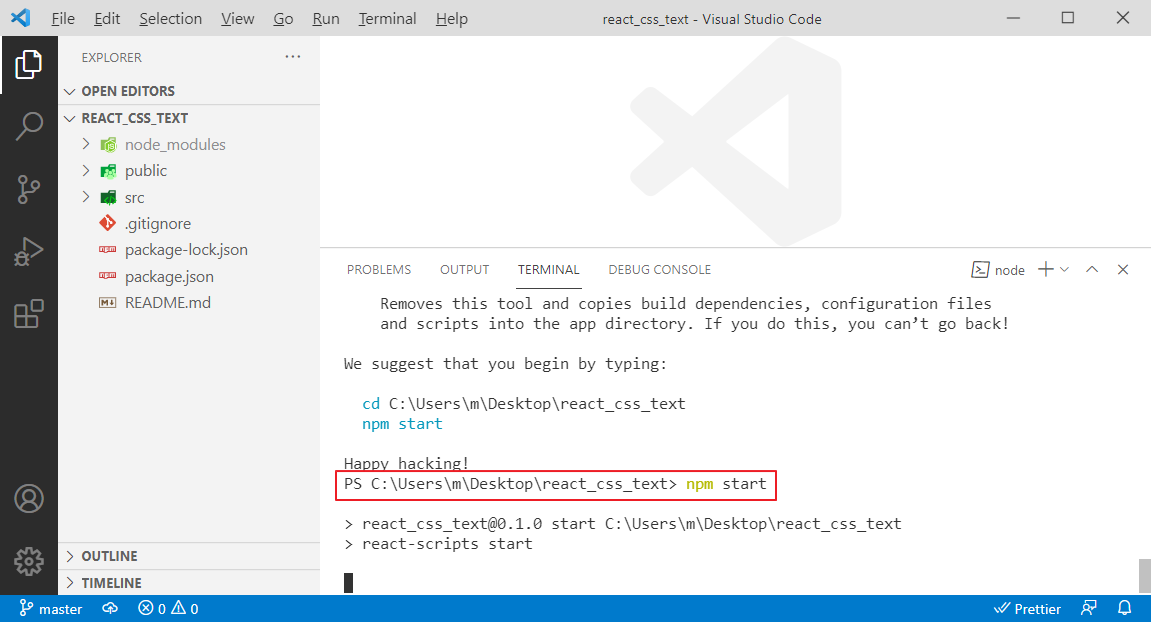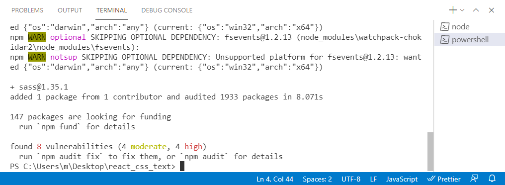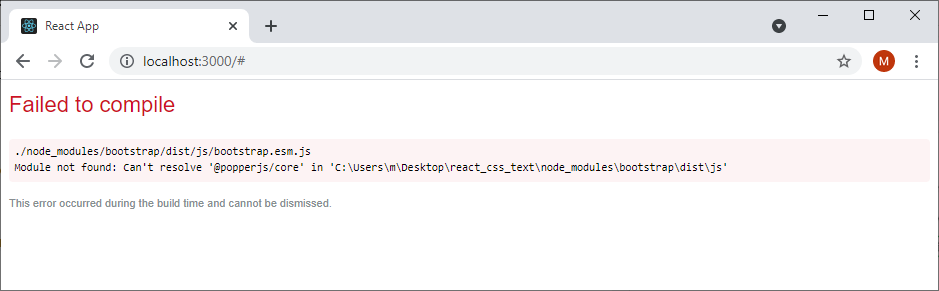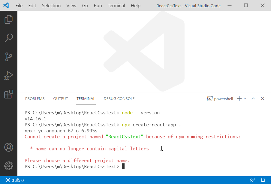 я назвал свой папку с большими буквами, а так делать нельзя поэтому папку придется переименовать. Например в react_css_text