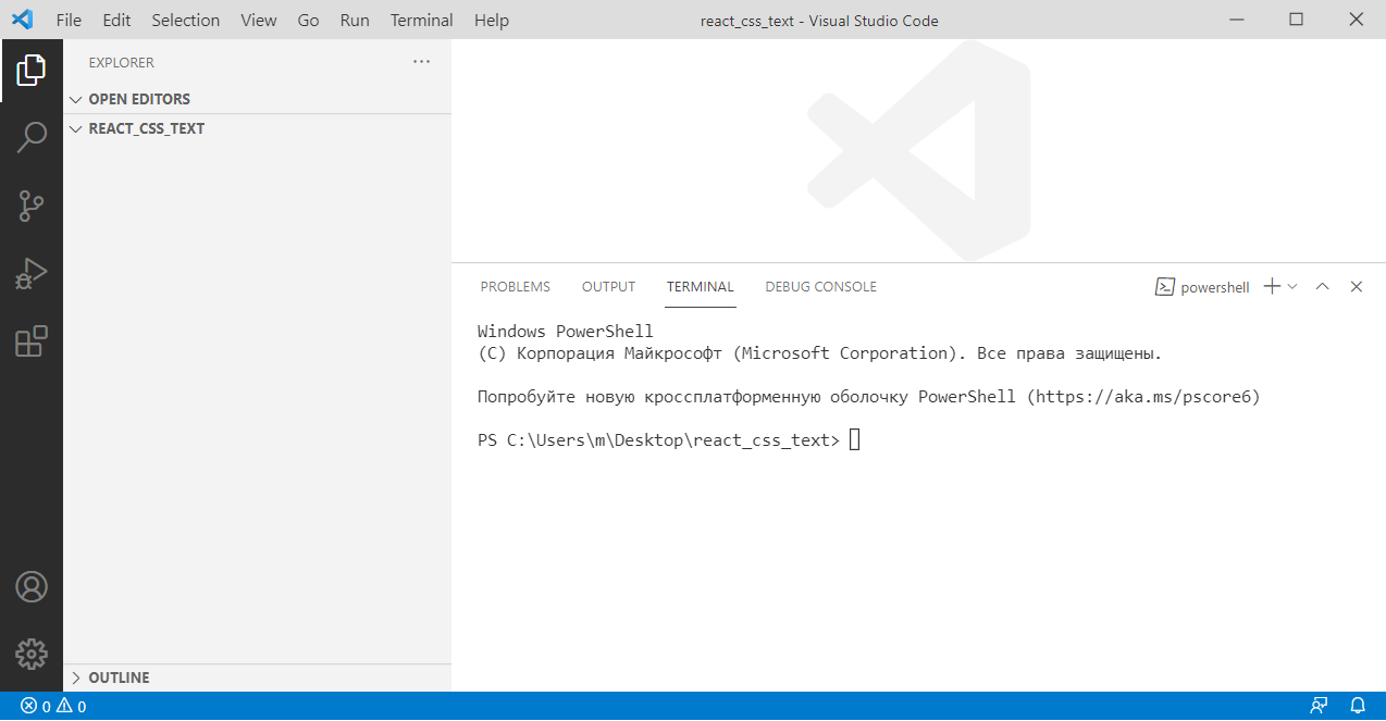 Теперь создадим пустую папку и откроем ее с помощью Visual Studio Code