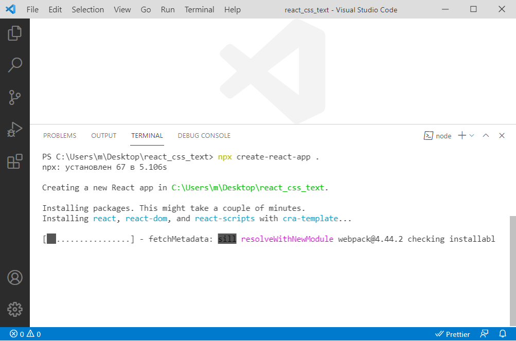 ждем, пока будут скачаны все пакеты необходимые для работы react приложения, как и в случае со всяким современным javascript приложением качается пол интернета…