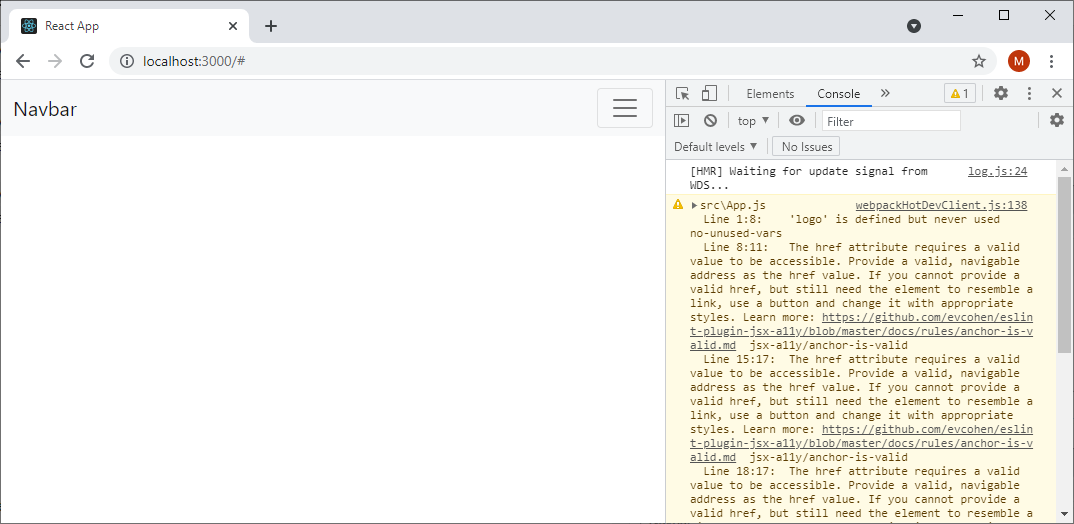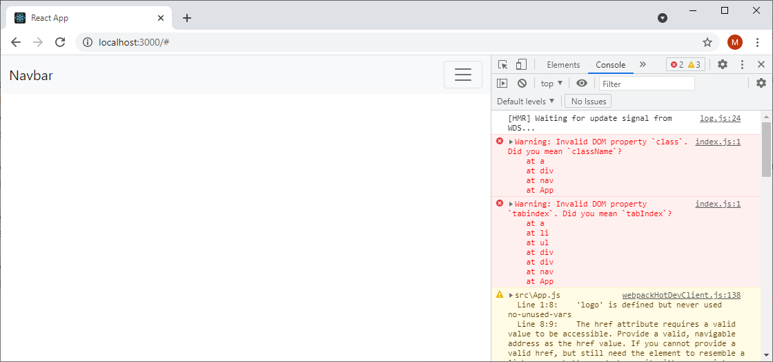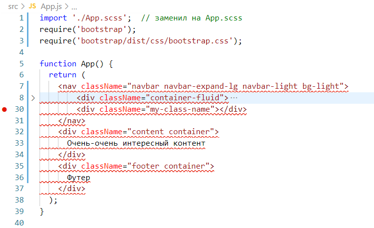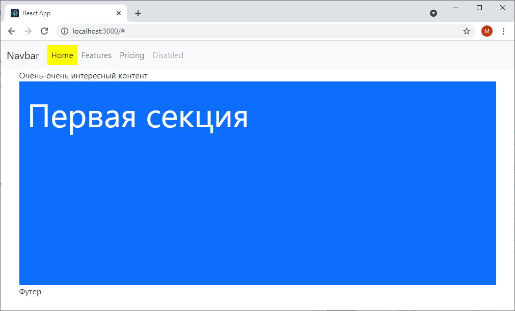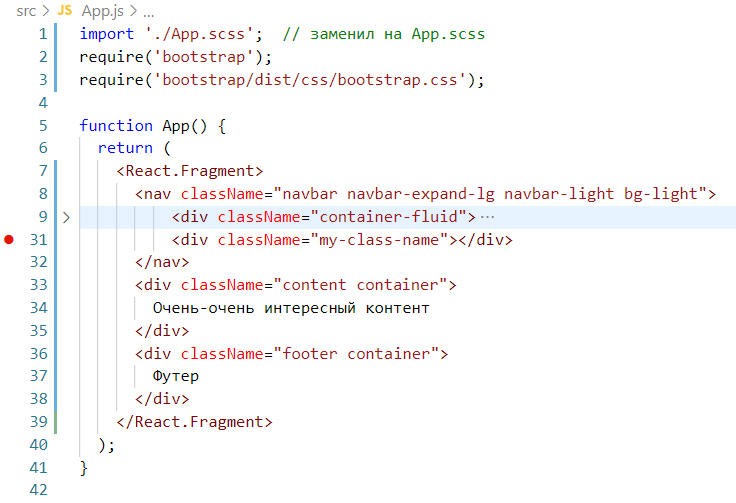 теперь попробуем загнать бутстраповскую навигацию. Идем в App.js, сначала все убираем
