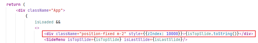 <div className="position-fixed m-2" style={{zIndex: 10000}}>{isTopSlide.toString()}</div>